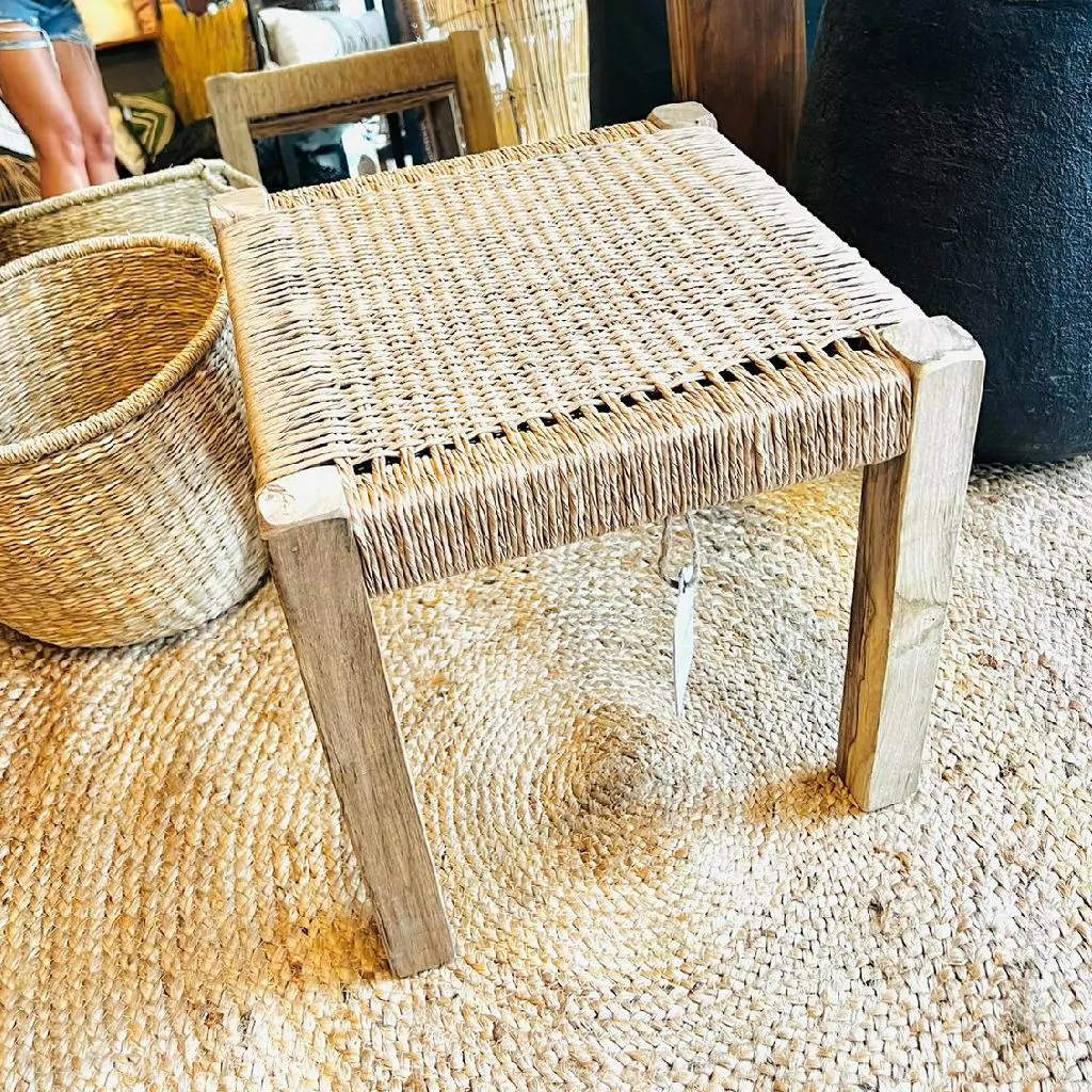Banco de 40 x 40cm de diseño, madera Petiribi encordado artesanalmente en hilo Kraft.