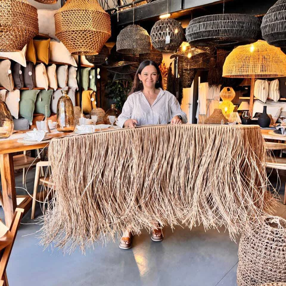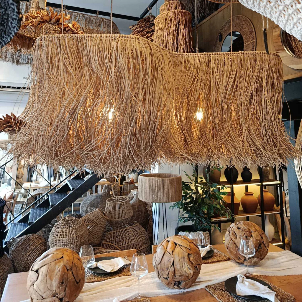 Lámpara Distinta tejida artesanalmente en hilo kraft de 2mm, con casi 5000 mtrs de hilo.