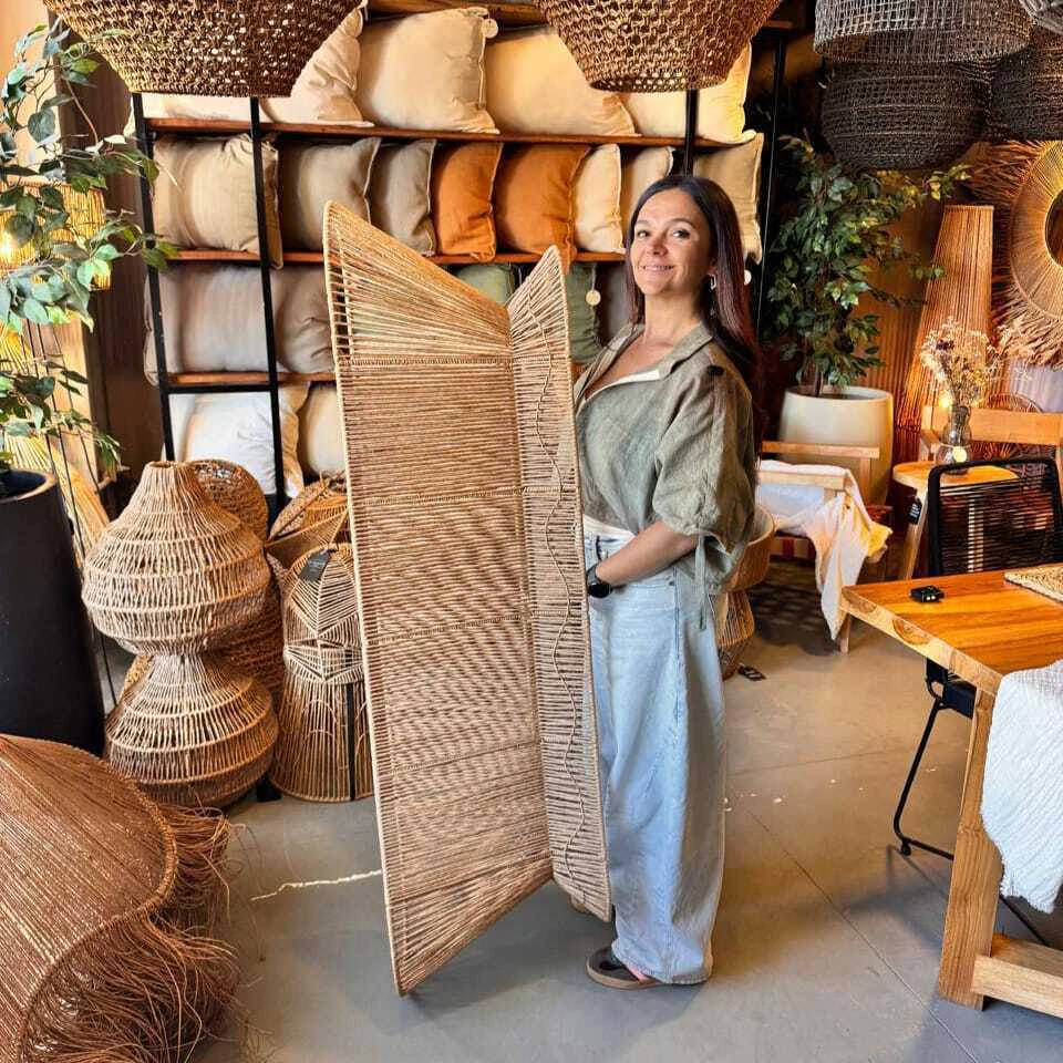 Lámpara Orio tejida con hilo kraft de 4mm sobre una estructura de hierro de 4mm.