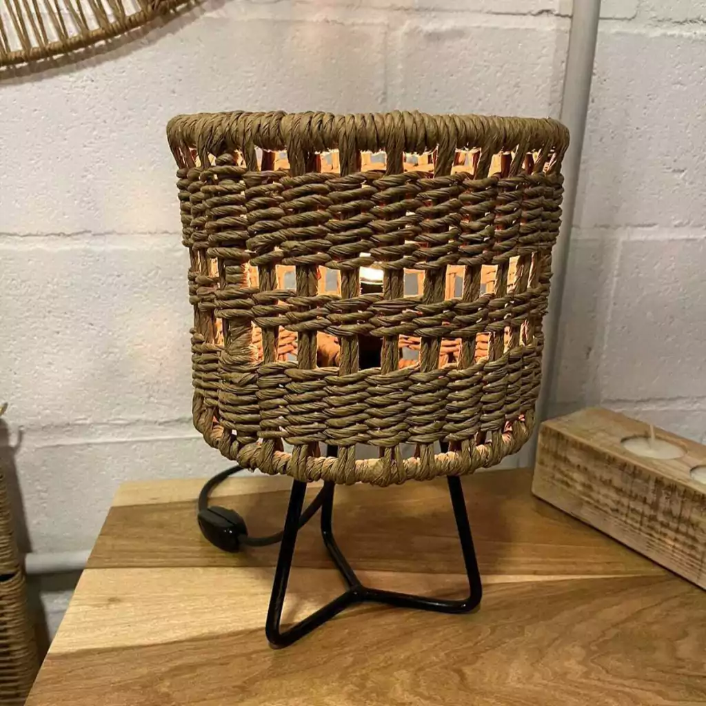 Workshop Presencial Velador Índigo. Vamos a tejer de manera artesanal con hilo kraft . Sobre estructura de hierro.